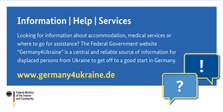 help displaced persons from Ukraine get off to a good start in Germany. The website offers information in Ukrainian, Russian, English and German to help displaced persons entering the country get oriented and find out what assistance is available to them. More services are planned.